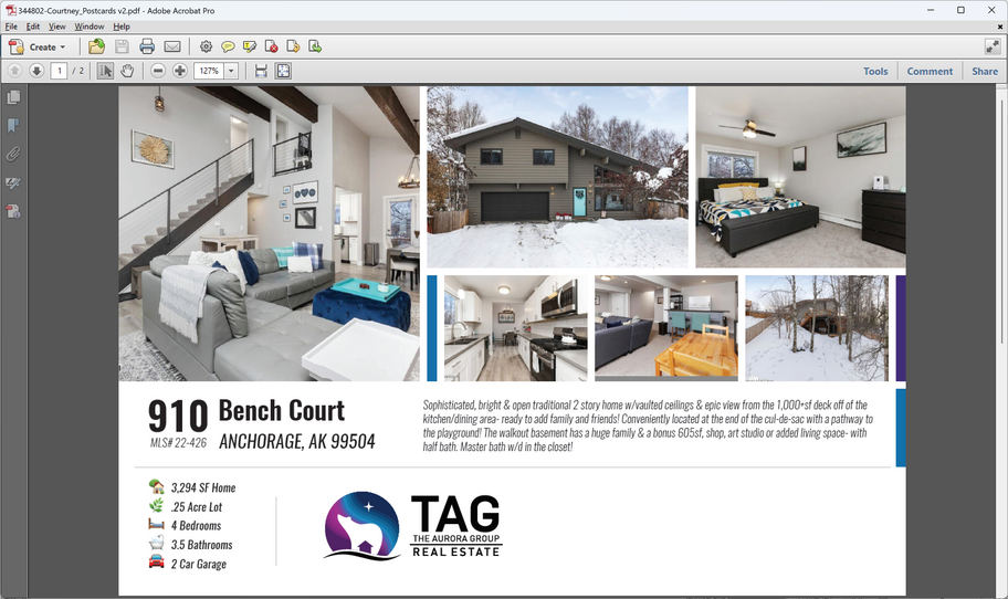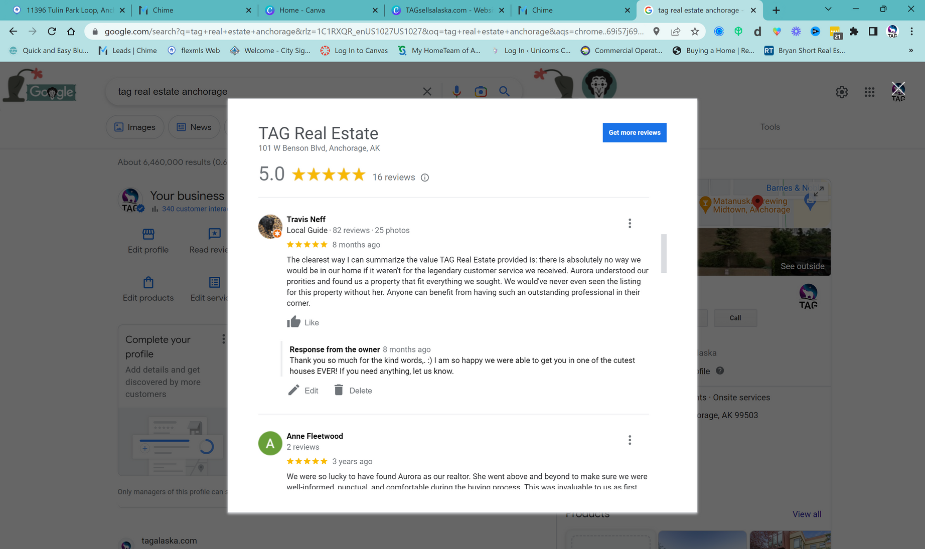 TAG will be the client’s preferred real estate team in Alaska, providing the highest level of client satisfaction every time. Every client will leave a friend we can help advise and assist for life in navigating home ownership and investing strategies. TAG will be the one stop shop for connecting and referring our clients to ethical, honest, and expert contractors/services to make life easier and more efficient! Our team of successful real estate professionals work together in a fun, and consistent environment to provide excellent service to our clients while we grow ourselves personally.